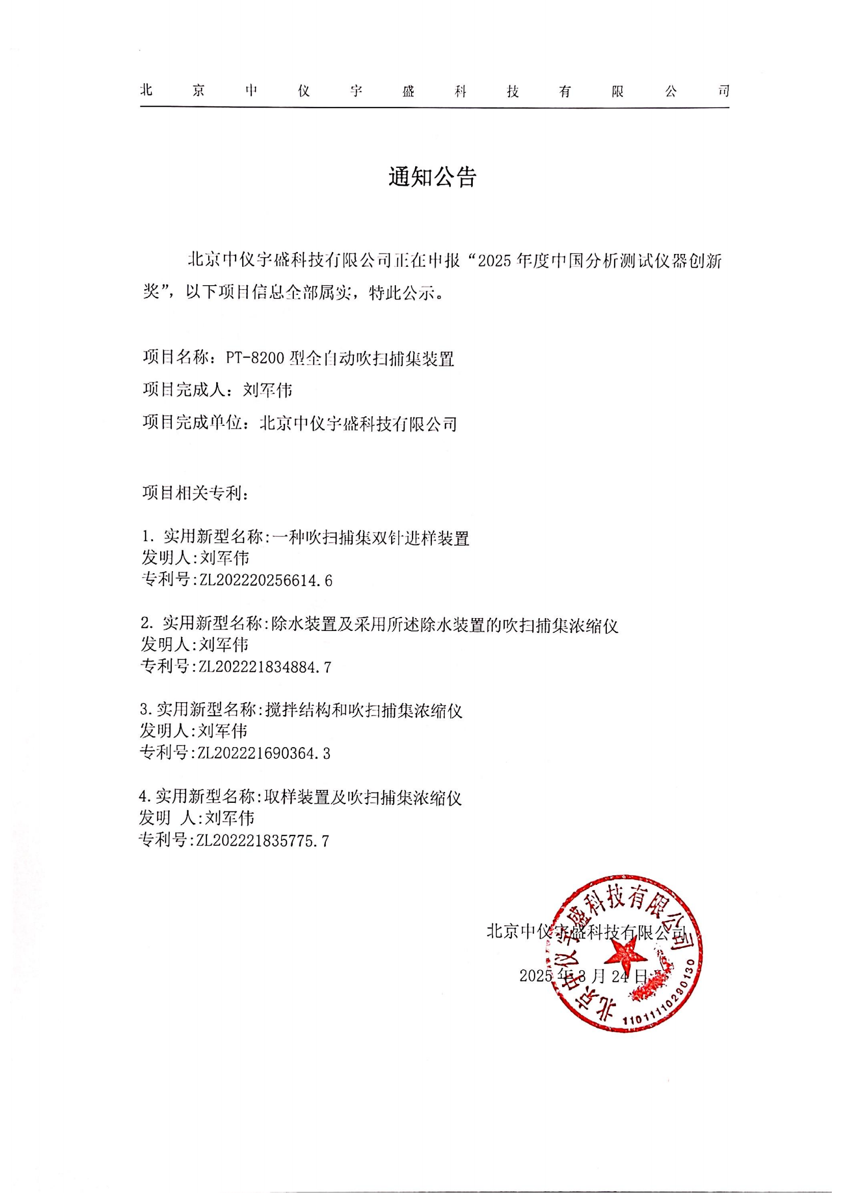 • 關于北京中儀宇盛申報“2025年度中國分析測試儀器創(chuàng)新獎”的 2025-03-24